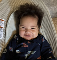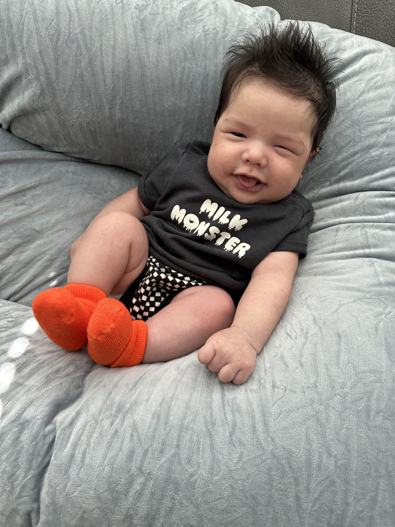 Face full of smiles and a head full of hair, Brody will turn heads wherever he goes. Happy, mellow little guy. Future heartbreaker! He will have you wrapped around his finger in no time.